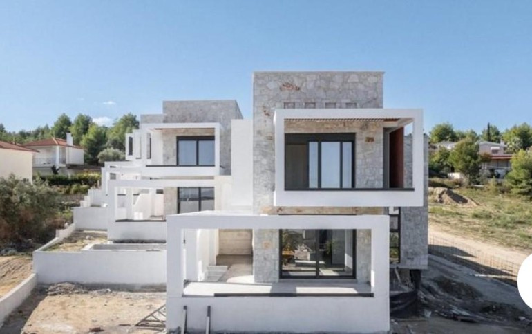 Se vând patru vile de lux într-un complex din zona Hanioti, Halkidiki, oferind priveliști unice asupra mării, munților și orașului. Vilele sunt proiectate într-un stil modern, cu tonuri pământii și materiale naturale, oferind o senzație de liniște și confort.