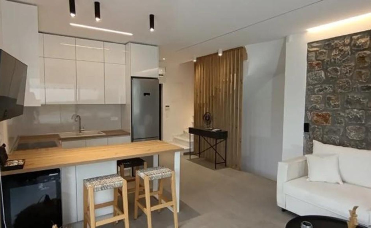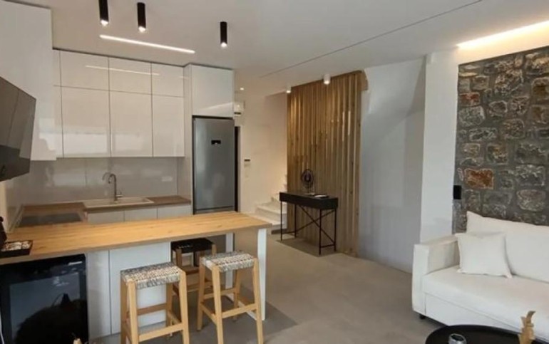 Luxury three-story holiday home of 180 sq.m. for sale in a privileged location between Pefkochori and Glarokavos, with unobstructed sea views and an eastern orientation. Its design combines geometric lines, local stone, and white plaster, while the outdoor space is landscaped with lawn and high-aesthetic plants. The architecture unifies indoor and outdoor areas, offering top construction quality and high standards. The villa is delivered fully furnished and decorated by a professional interior designer.