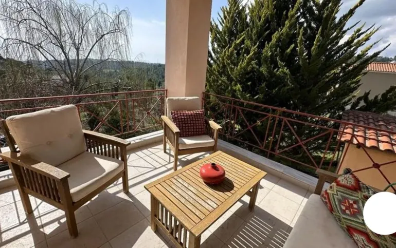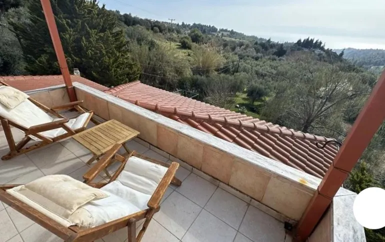Unique 206sqm villa on a fenced 1,067sqm plot, built with attention to detail. It consists of 3 levels and features 2 living rooms, 2 sitting areas, 3 bedrooms, 2 bathrooms, a rustic kitchen, and ample storage space. The master bedroom has a private balcony with an unobstructed view of the Northern Aegean, while the villa’s large terraces offer panoramic countryside views and breathtaking sunsets. There is a fireplace on both the ground floor and the first floor, creating a warm atmosphere. The villa is in a prime location with complete privacy, surrounded by nature. The well-maintained garden includes mature trees and shrubs, while the outdoor storage space and spacious parking for three cars make it ideal for both permanent residence and a vacation home.