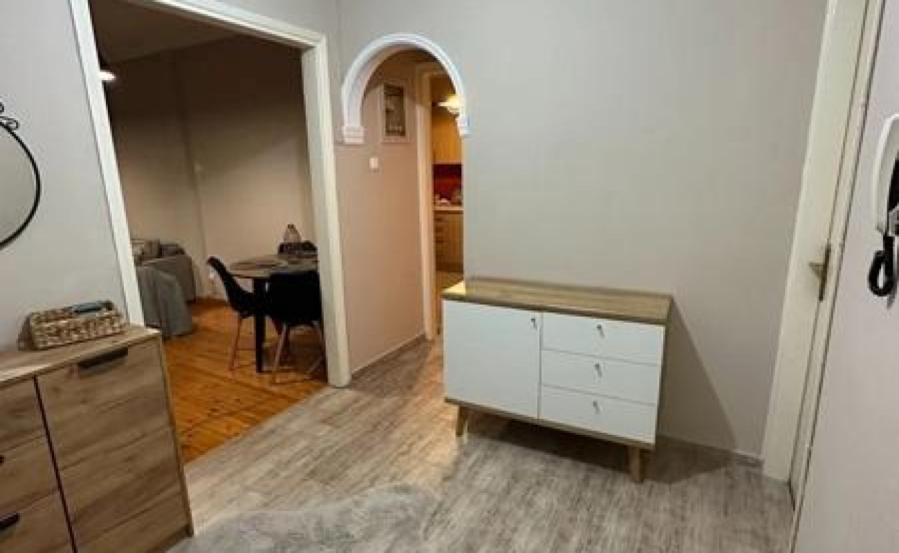 Светъл и функционален апартамент от 80 кв.м на 6-тия етаж, в сърцето на града. Намира се до метростанция и училище, само на няколко крачки от Античната Агора. С югоизточно изложение, частично реновиран и напълно обзаведен, представлява отличен избор за живеене или инвестиция. Участва в програмата „Моят дом 2“, идеален за млади купувачи.